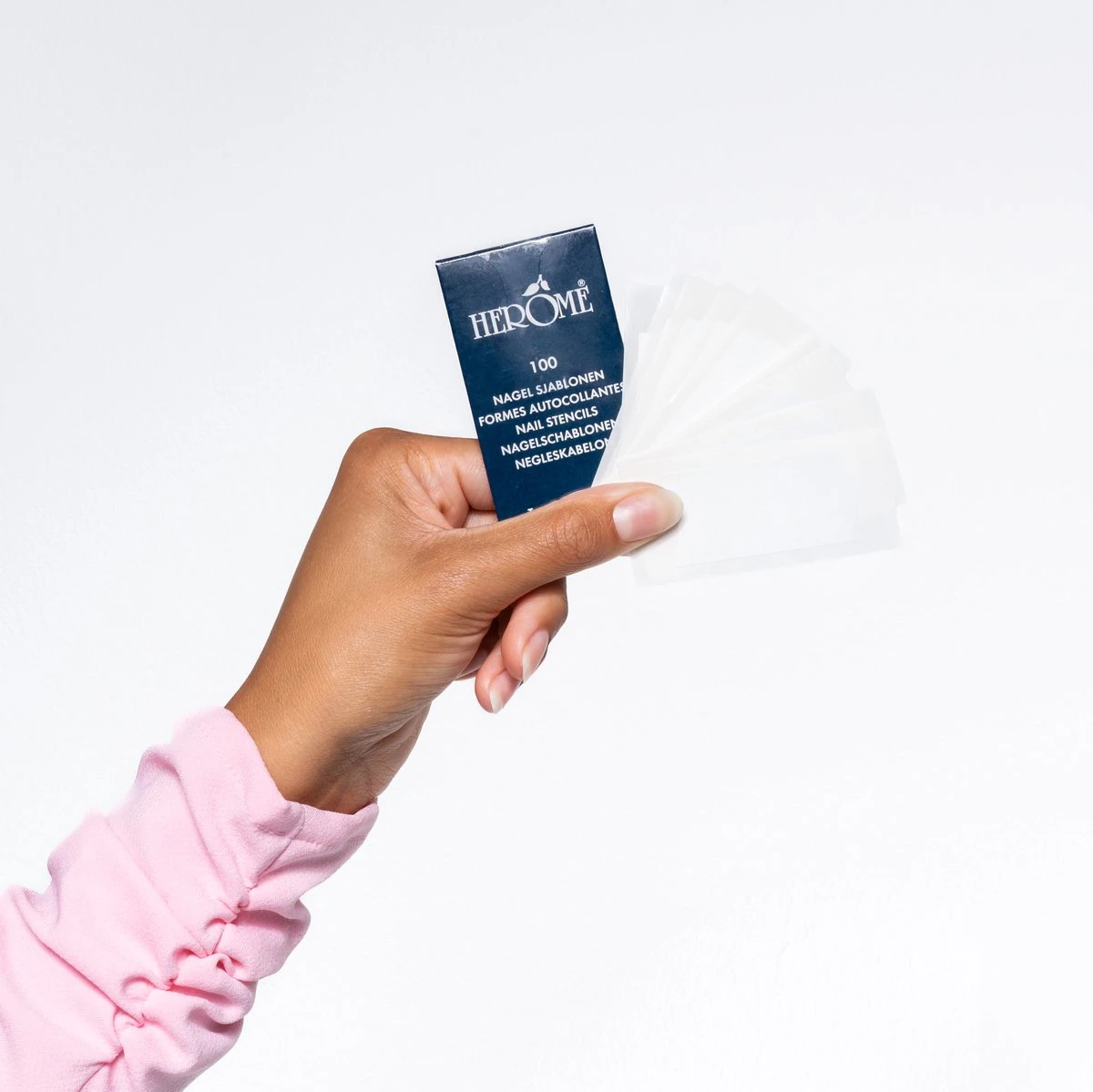 Het is niet eenvoudig om zelf rechte randjes op je nagels aan te brengen. Door deze sjablonen op je nagels te plakken, voorkom je dat je uitschiet. Het resultaat: een French Manicure met superstrakke, witte nagelranden.