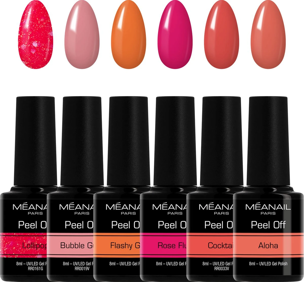 6 flesjes PEEL OFF gelnagellak van 8ml