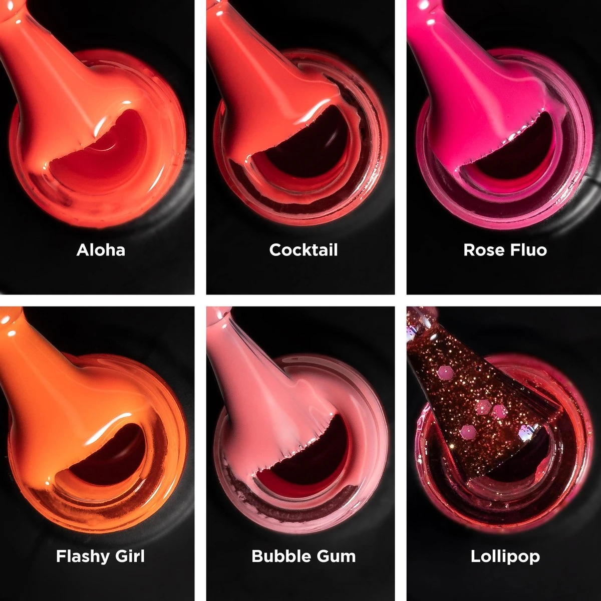 Flashy Girl, Bubble Gum, Rose Fluo, Aloha, Cocktail en Lollipop