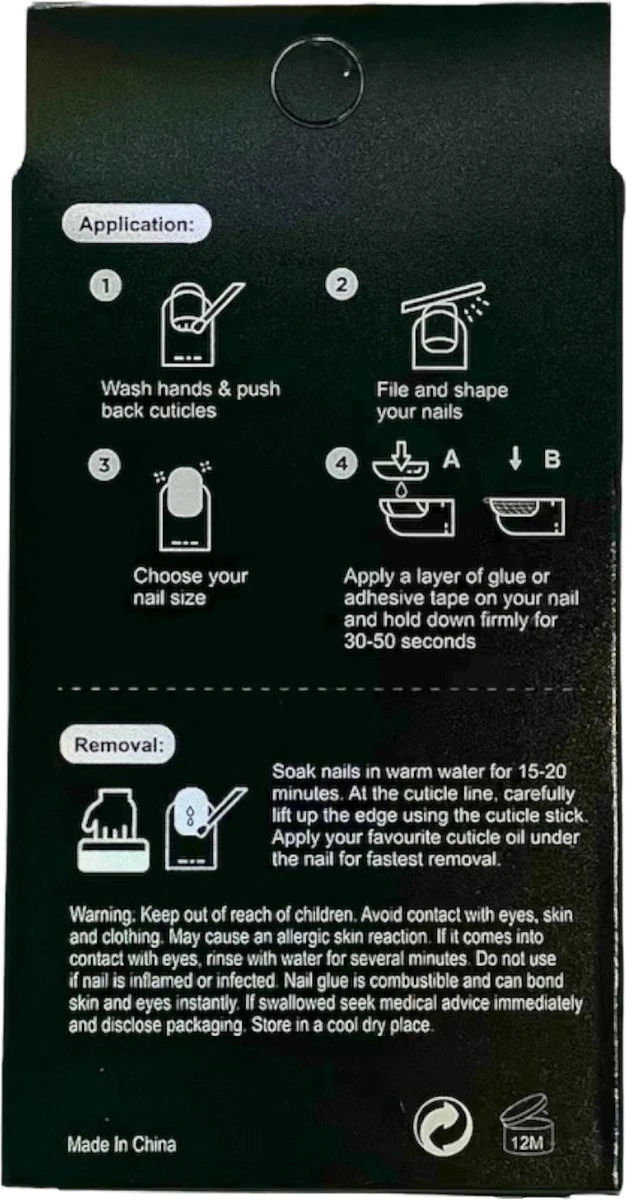 - Breng nu de nagel stickers óf nagellijm aan. Lijm biedt een langer resultaat, echter kan dit de eigen nagels beschadigen.