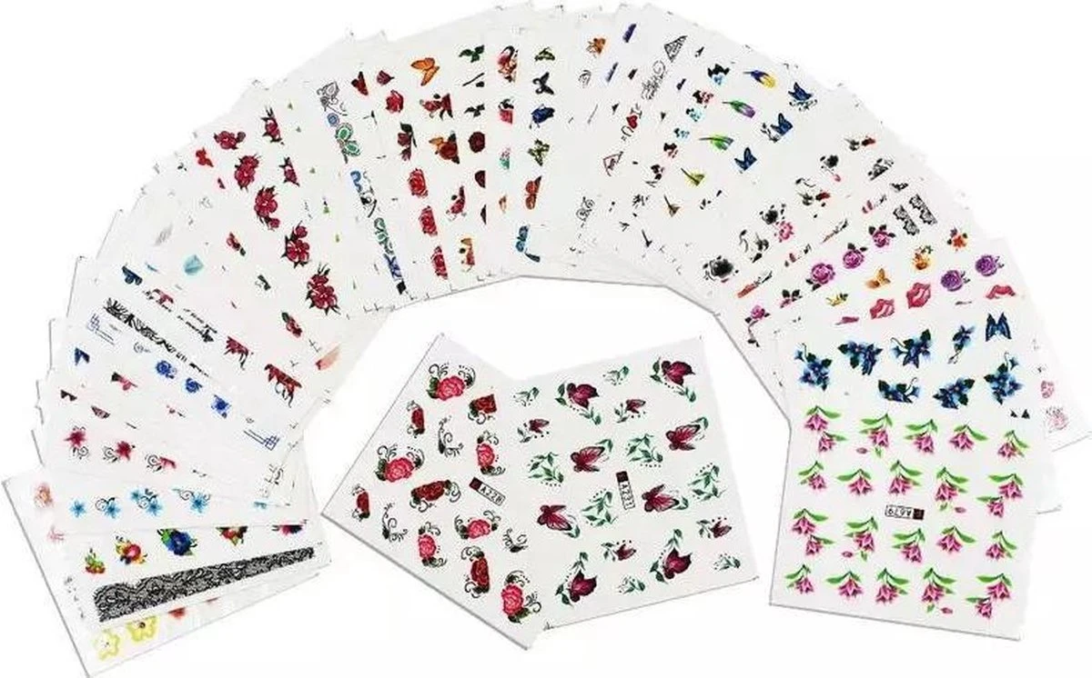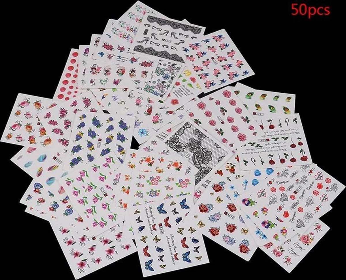 Helemaal in bij nail art en nagel-styling. De stickers worden geleverd per 50 vellen in een mix van verschillende designs.