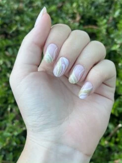 Merkloos Wit/goud Lijntjes Nagels – Plaktabs – Plaknagels – Glitter- Kort