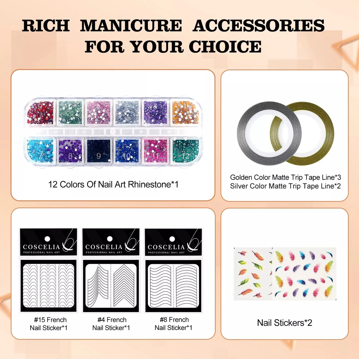Deze set ontbreekt aan helemaal niets! Van nagelriem olie tot aan nagel reinigingsdoekjes en van teenspreiders tot aan nagelriem mesje. Met deze set geef je jezelf of je klanten een uitgebreide manicure gevolgd door een prachtige gellak behandeling. De kleuren zijn speciaal geselecteerd voor 2021 en bevat tevens wit voor het creeren van een mooie french manicure.