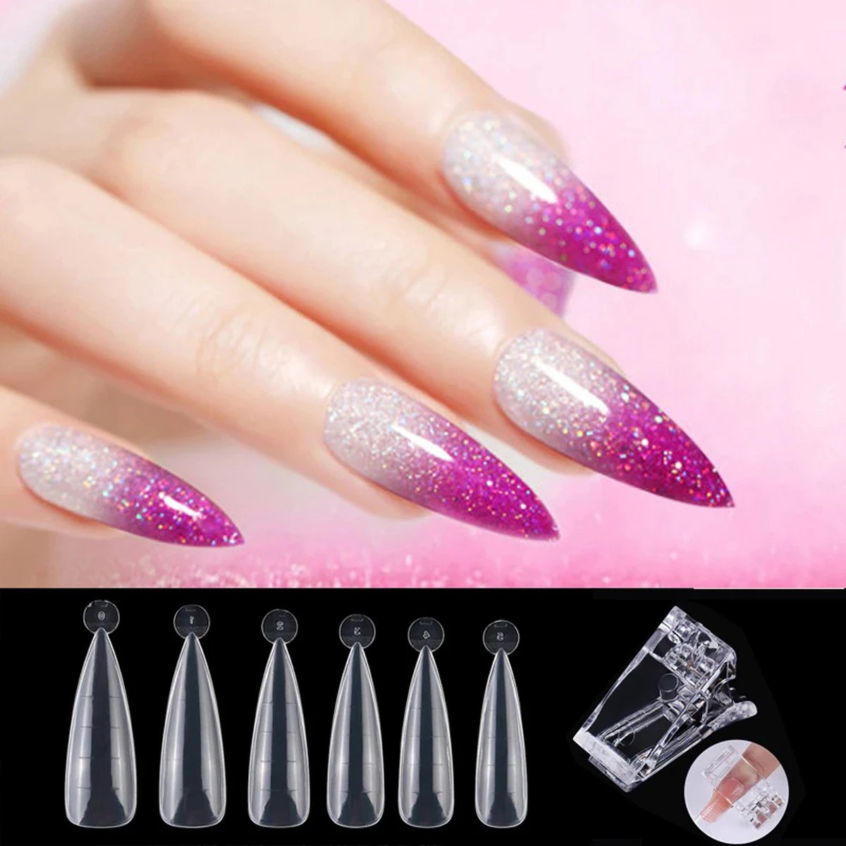 – Transparante modellering sjablonen voor Polygel / Gel / en Acryl nagels.