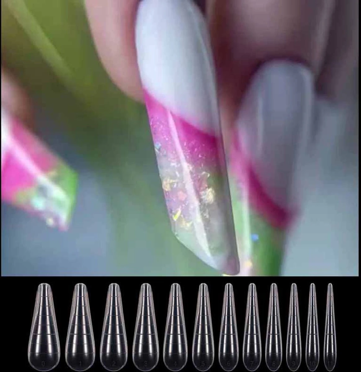 – Transparante modellering sjablonen voor Polygel / Gel / en Acryl nagels.