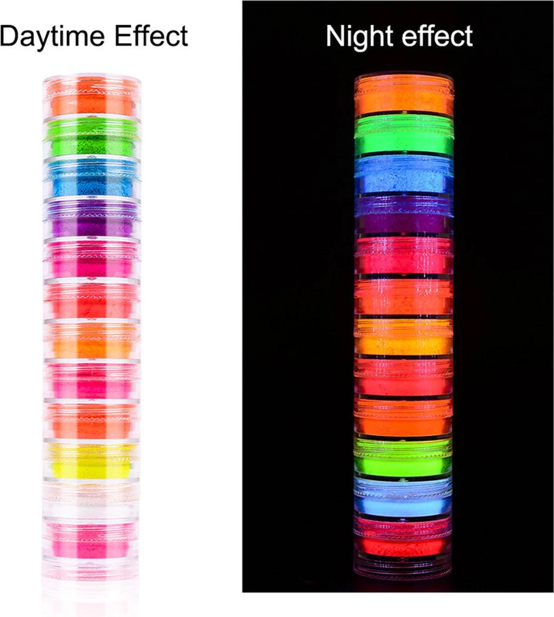 Deze 12 delige Nail Art Neon Glitter Poeder van Royala is het meest Trendy Nail Art artikel wat je kunt vinden. Set bestaat uit 12 diverse felle Neon kleuren. Met deze super gave Neon Nagel Poeders maak je de mooiste en meest trendy creaties op de eenvoudigste manier. Je kunt dit zowel gebruik op de natuurlijke nagels maar ook werkt dit uitstekend op Gelnagels, Acryl, Polygel en andere systemen!
