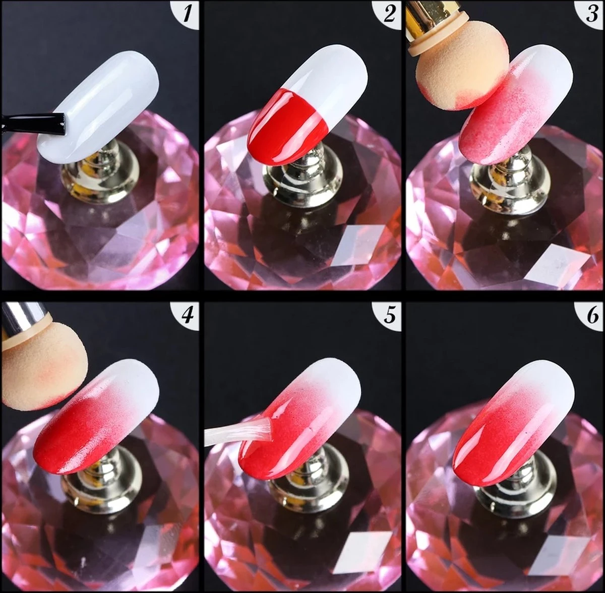 Een pen met een spons aan beide kanten voor het creëren van multikleur nagels met brush effect.